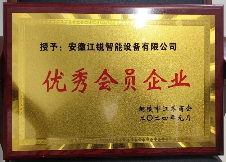 商会宣读了评优评先表彰决定并授牌,安徽江锐智能设备有限公司获得铜陵市江苏商会2023年优秀企业会员称号。