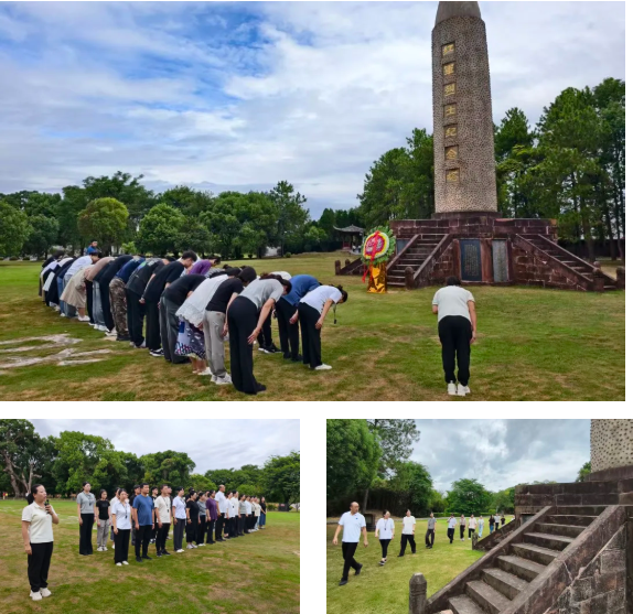 “为有牺牲多壮志,敢教日月换新天”。叶坪红军广场上,红军烈士纪念塔巍然耸立,地面上“踏着先烈血迹前进”8个遒劲大字熠熠闪光。纪念塔前,全体成员怀着崇敬之心,向烈士纪念塔鞠躬致敬。